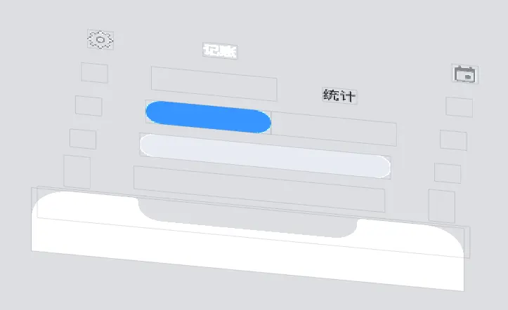 看到这个设计图一开始的想法就是,左右两个按钮,底部一个滑块视图,然后到做的时候,发现如果要做手势拖拽的话,那么由于层级关系,滑块肯定是在两个按钮下面的,如果要触发滑动手势,势必会被按钮的点击事件阻止。