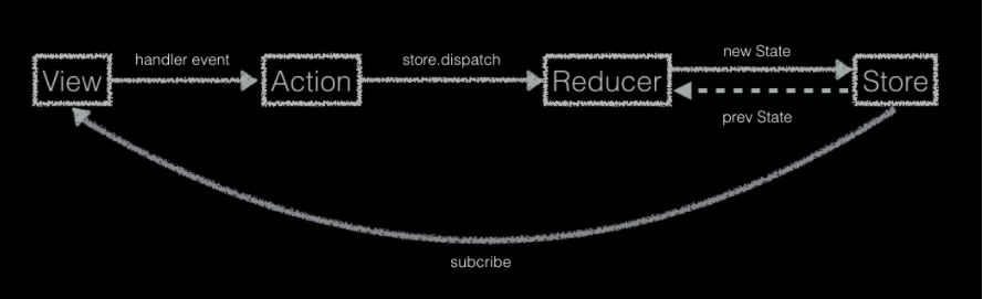 Reducer的作用是接受一个旧的state与Action,返回新的state,是更变数据的唯一入口,就像这样: