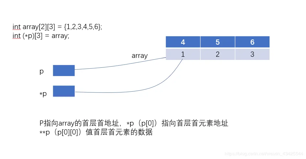 printf("p[1][2] = %d,array[1][2] = %d\n",p[1][2],array[1][2]);