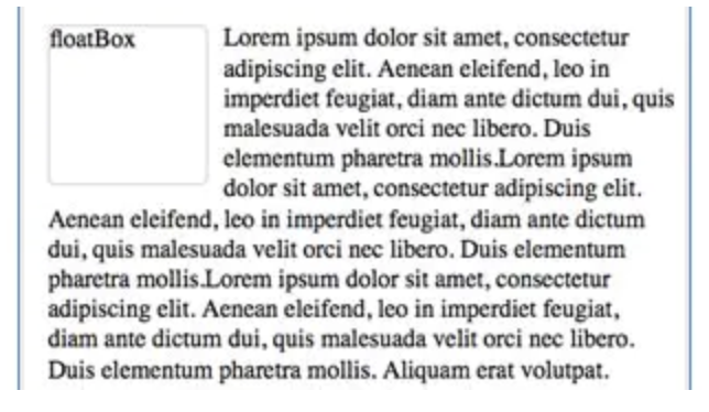 当一个元素浮动之后,不会影响到块级框的布局而只会影响内联框(通常是文本)的排列