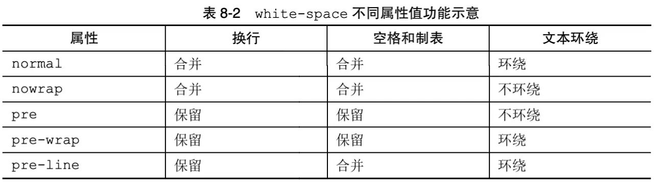 而white-space的功能也是分为这三个维度:是否合并空格,是否合并换行,是否文本自动换行