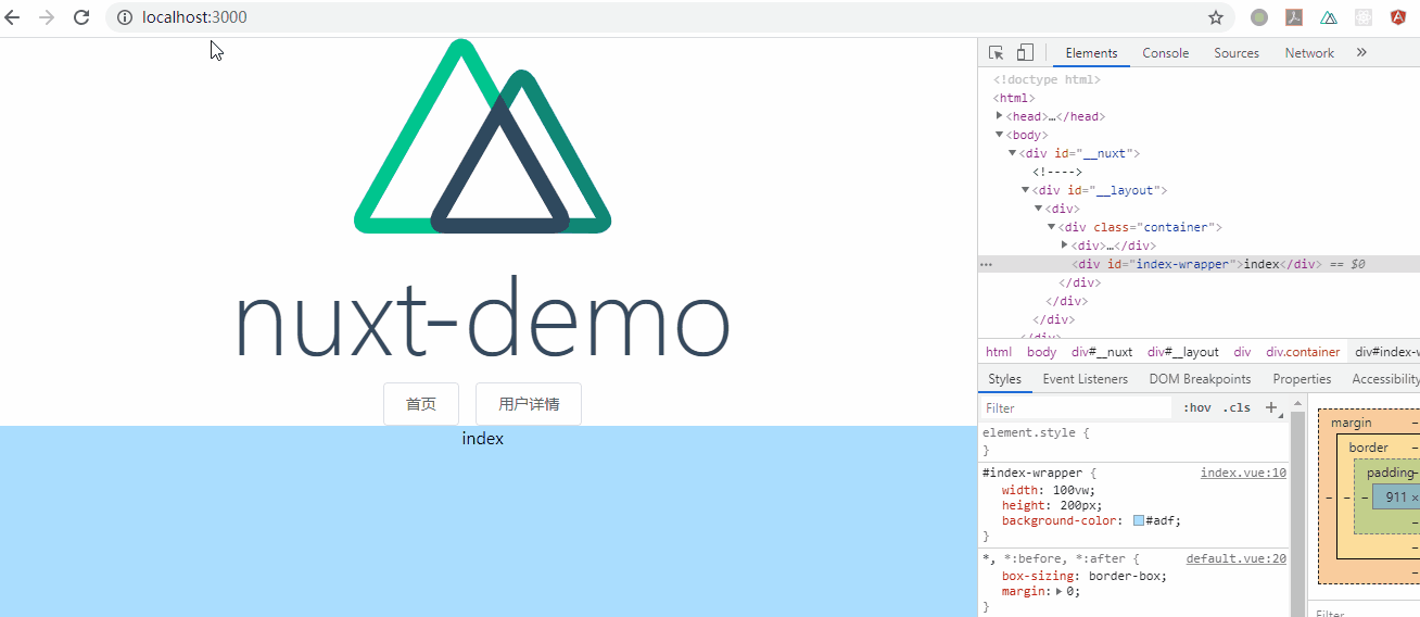 所以,我们的文件夹也为index,index文件夹需要一个默认的页面不然nuxt的路由规则就不能正确匹配页面