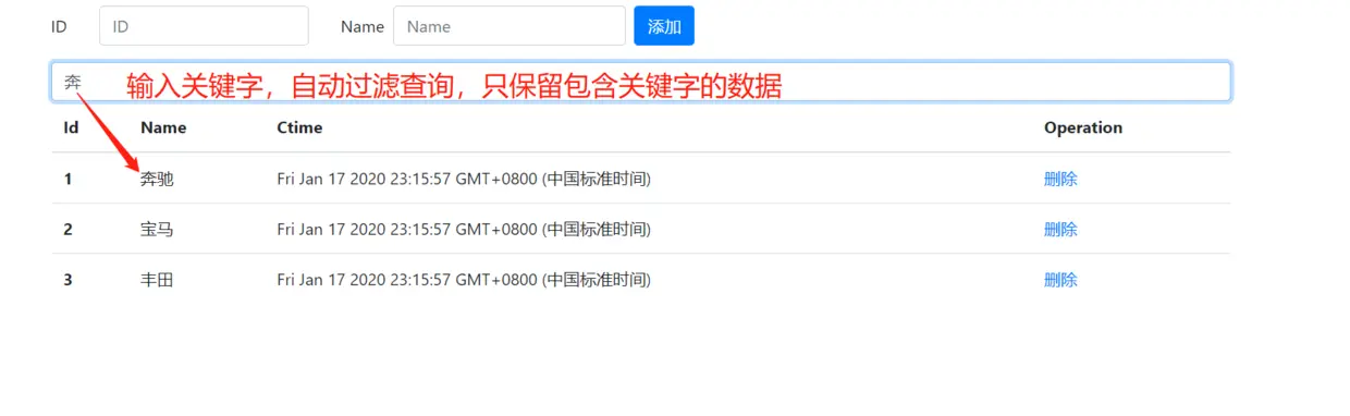 前面介绍了列表操作中的数据新增、删除的功能,本篇章来看看关键字查询的功能。