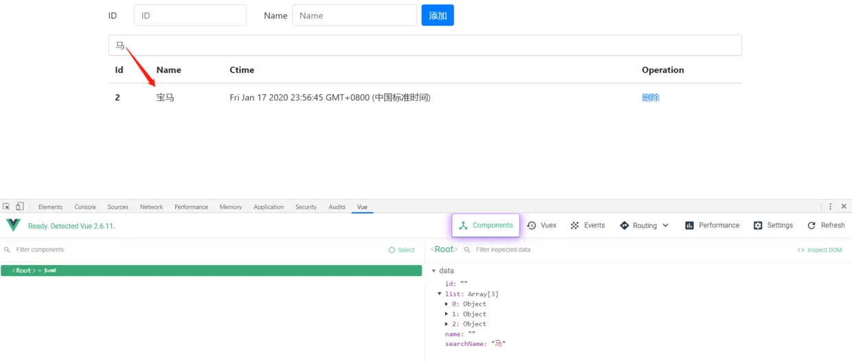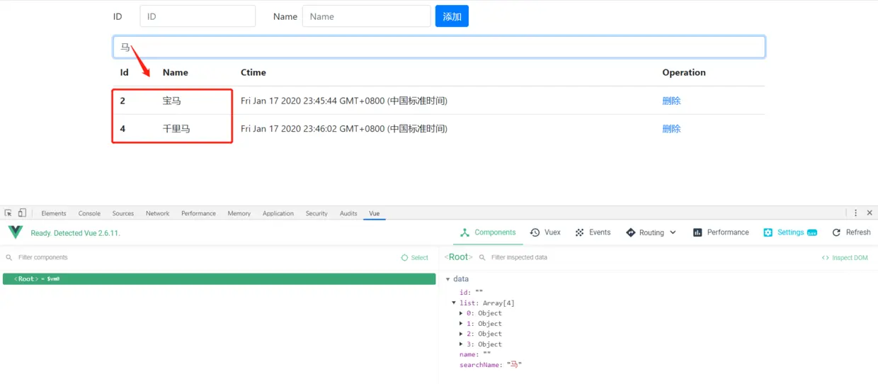 searchName属性,后续用来基于这个searchName来过滤数组数据。