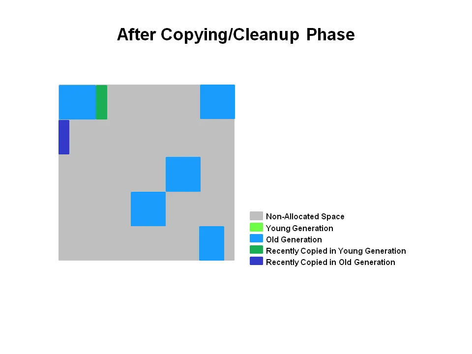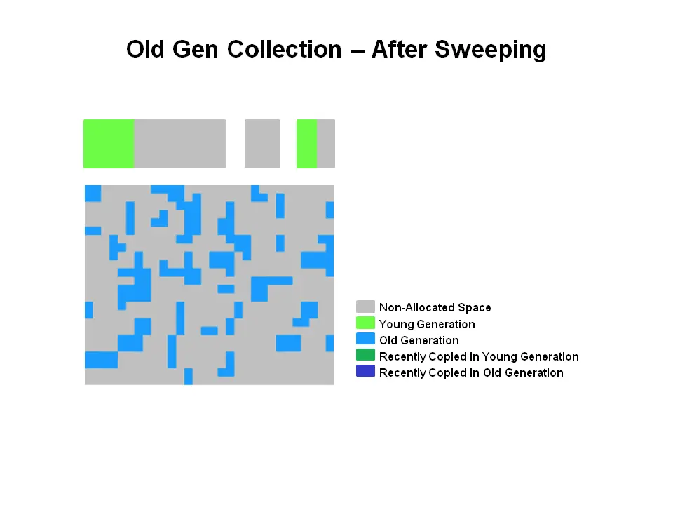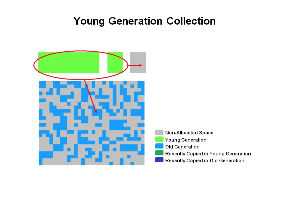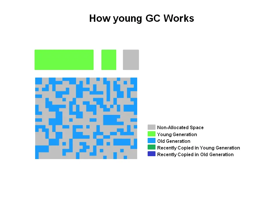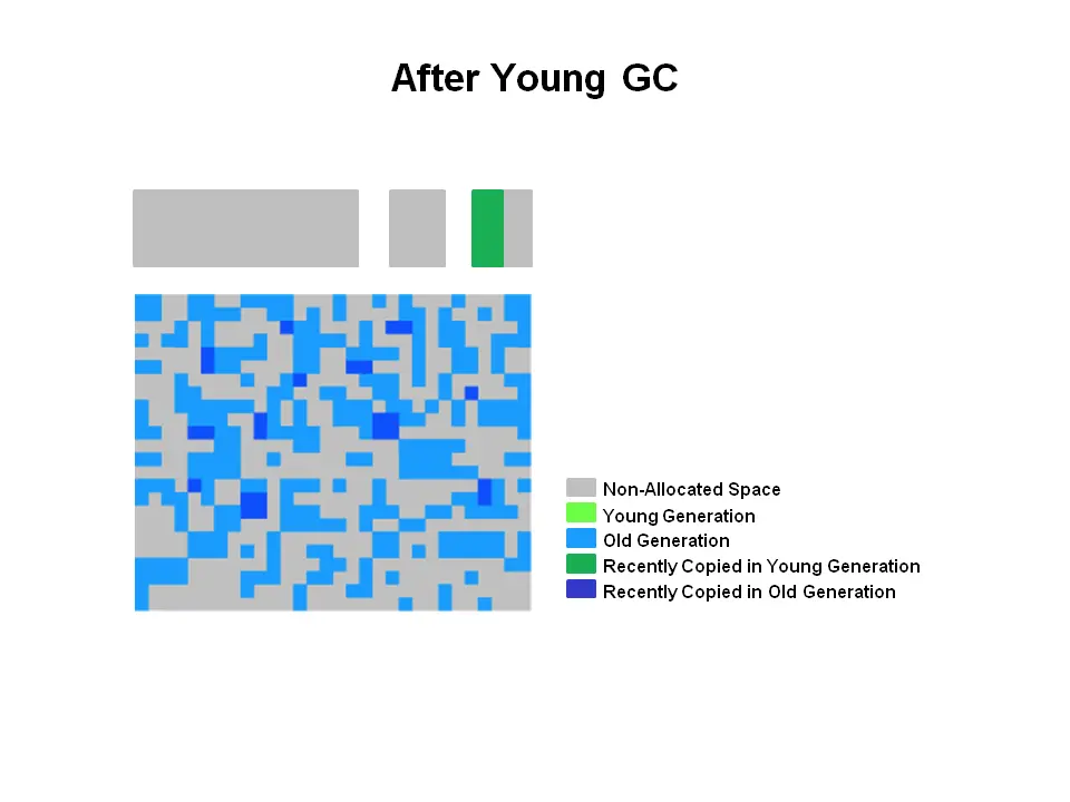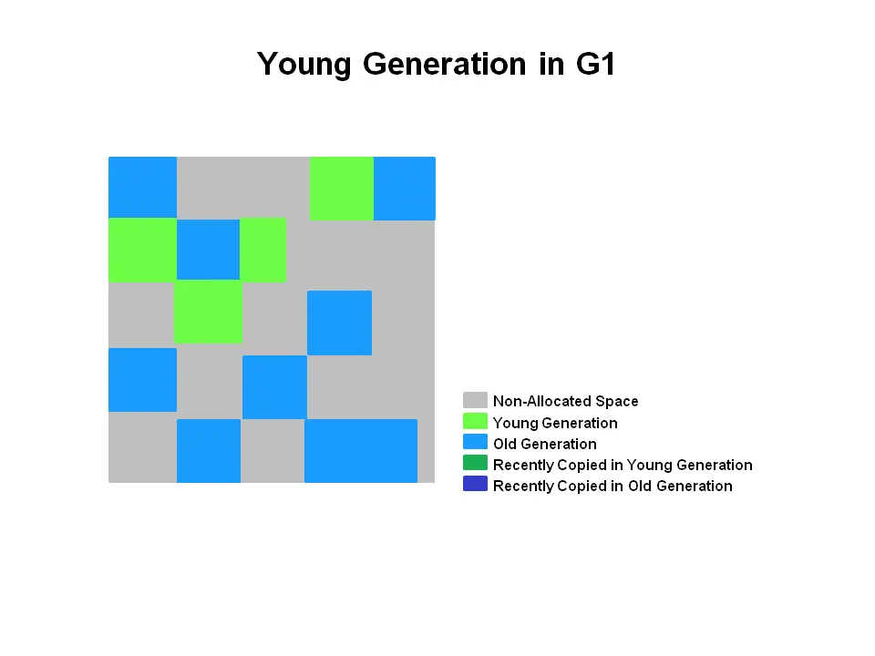 所有内存对象都在这三个部分中的一个终结。 G1垃圾回收器使用了不同的方法。