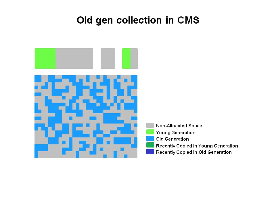 CMS垃圾回收器(也被称为并发低暂停回收器)回收年老代。它尝试通过与应用程序线程并发执行大部分垃圾回收工作以尽量减少由于垃圾回收导致的暂停。通常并发低暂停垃圾回收器不会拷贝或者压缩存活对象。一次垃圾回收完成而不移动存活对象。如果碎片成为问题,分配一个更大的堆。