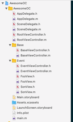我们会看到有一个Use Header Maps开关,默认是打开的。这个意思是:开启这个开关后,在本地会根据当前目录生成一份文件名和相对路径的映射,依靠这个映射,我们可以直接import工程里的文件,不需要依靠header search path。 我们在管理项目的时候,一般都会把文件放在各个模块下面,模块以各个文件夹区分,在Xcode中创建文件夹会有两种方式,一种是虚拟文件夹(文件还是在项目根目录下),一种是真实文件夹。我之前一直觉得他们就是文件在不在一起的区别,当我关掉Use Header Maps这个选项的时候,这两种文件夹在这里又表现出了不一致。