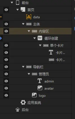 最近在学习使用ivx进行开发的过程中,对响应式布局/自适应布局/宽度自适应(相对定位)方面的开发颇有收获,自己总结了些经验希望能和大家分享下。为了方便,我针对官网的demo栅格系统,进行了以下分析: 1.自适应布局的核心组件要用到相对行的环境宽,单个模板的进行设计的时候通过设置环境宽变化时模块的宽度,可以实现不同环境宽时都能美观合适地展示模块,我多少试验后发现环境宽较大时,将模块宽度就设置小一点,这样每行显示的模块数量就会变多,看起来不会太分散,同理,环境宽较小时就设置大一点,这样每行显示的模块数量就会变少,看起来不会太拥挤,具体设置在后文中会说明。 2.首先的话,多个模板肯定要用到很多组相同的数据,所以建议先新建一个数组,将需要展示的模块数据导入数组,然后在首页下创建相对行,作为导航栏,这里demo中导航栏的宽度为100%,因为导航栏要自适应网页的宽度,所以宽度设置为百分比,再在相对行容器下添加对象,demo中选择的是等间距的水平对齐方式,这样能让对象随着网页宽度变化撑满导航栏,如果想要让所有对象都保持在一块,就选择其他的水平对齐方式