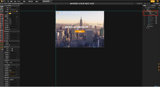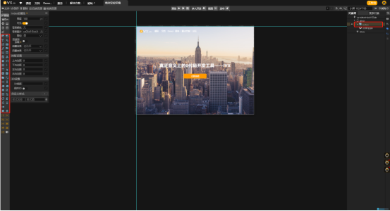 2.创建新作品后我们可以看到,右边的页面和左边的组件,都是浅蓝色的,在ivx中,将相对定位的对象和组件显示为白色,而绝对定位的对象和组件显示为浅蓝色,我觉得这是ivx非常细心的地方,感受到了制作人员的呵护,十分方便我们的判断,一目了然
