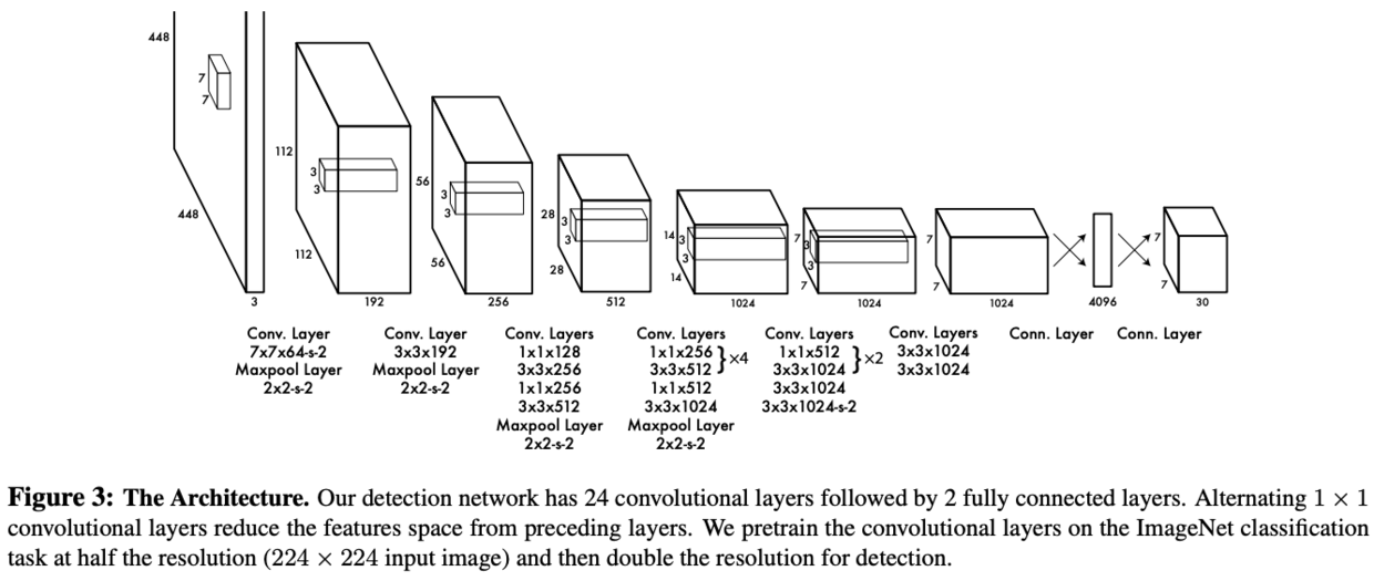主干网络共24层卷积加2个全连接层,没有类似于inception module的旁路模块,而是在卷积后接