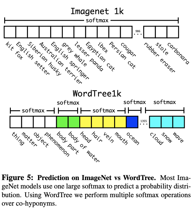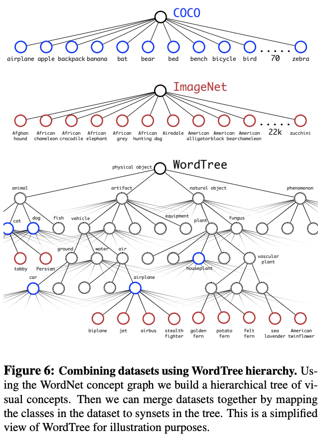 将COCO和ImageNet进行合并,得到图6的WordTree,共9418类
