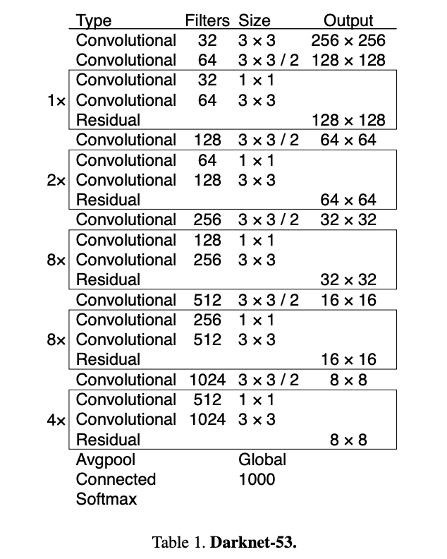 - 提出Darknet-53,将shortcut连接加入到网络中