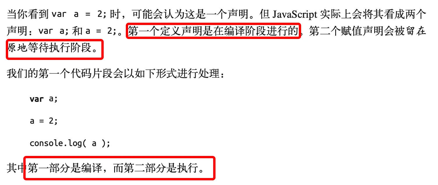 包括变量和函数在内的所有声明都会在任何代码被执行前首先被处理。