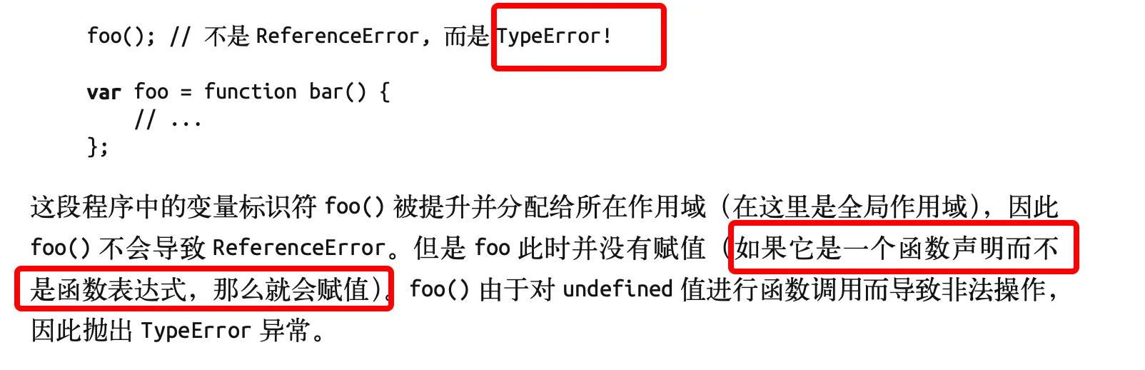 最重要的区别:名称标识符将会绑定在何处。函数foo被绑定在所在作用域中,可以直接通过foo()来调用它。函数表达式foo被绑定在函数表达式自身的函数中而不是所在作用域中。