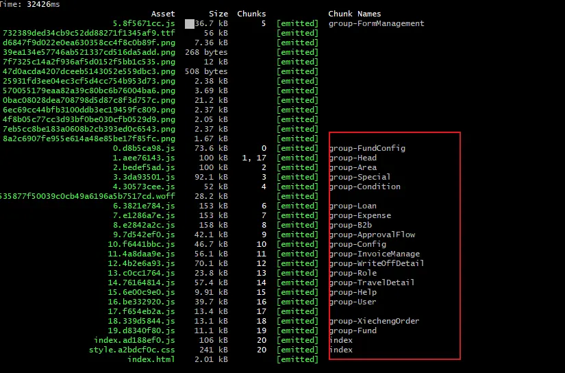 作者优化这个项目之前,开发人员也是分组打包,但是是一个路由打包一个js文件,导致最后的结果就是,生产了60+的js文件,在进行批量发布时,哪速度叫一个感人,作者进行了一个简单的操作优化, 就是根据名称分组打包,最后打包下来只有10+的js,并且我发现,60+文件打包的大小比10+文件的总体大小要大一些。哈哈哈,无意间发现的。