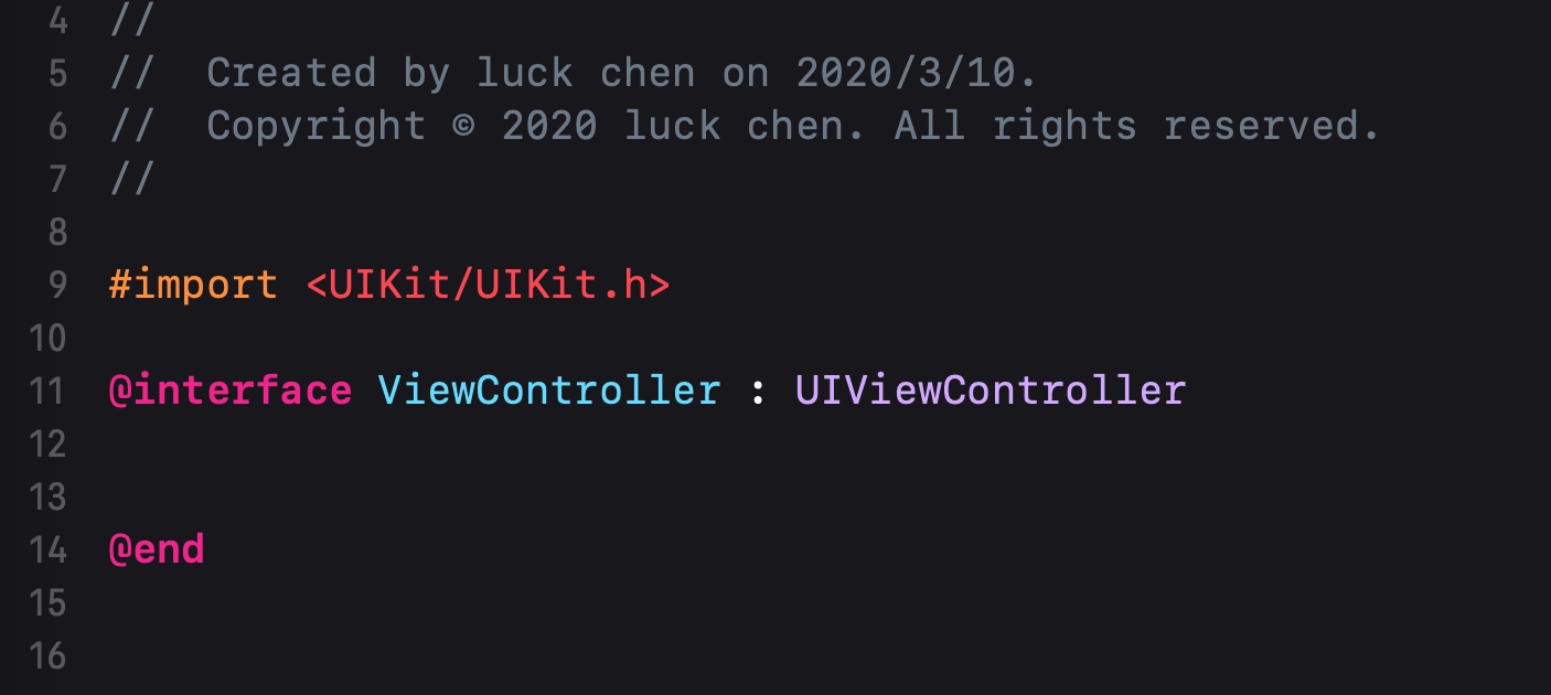 这里把工程里面左右的头文件都拿到了,接下来看看ViewController里面是什么