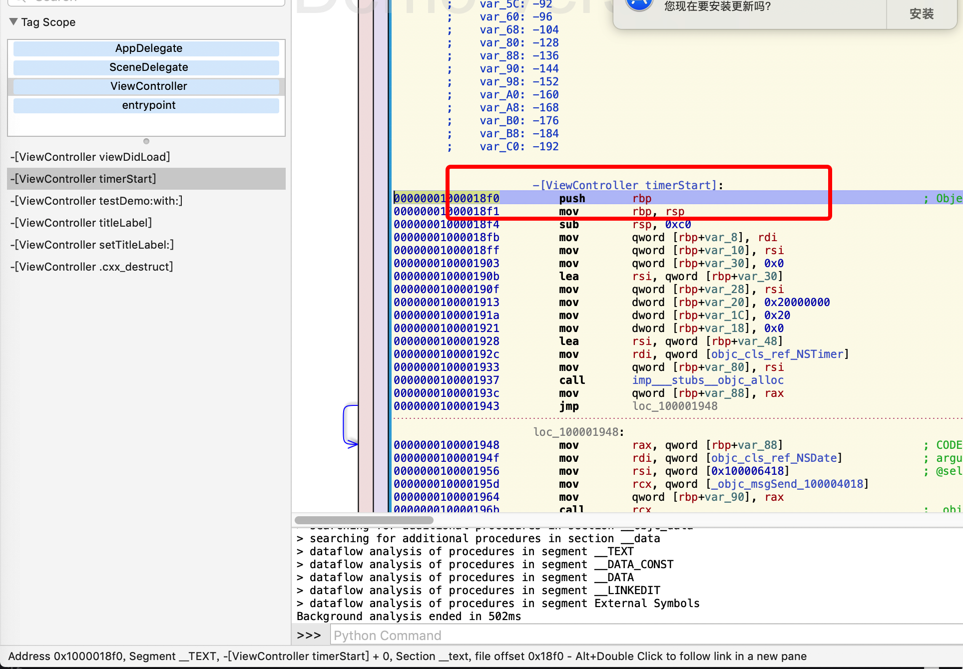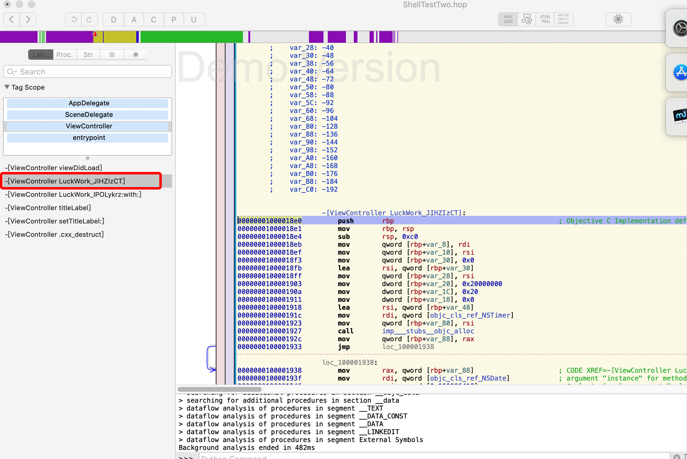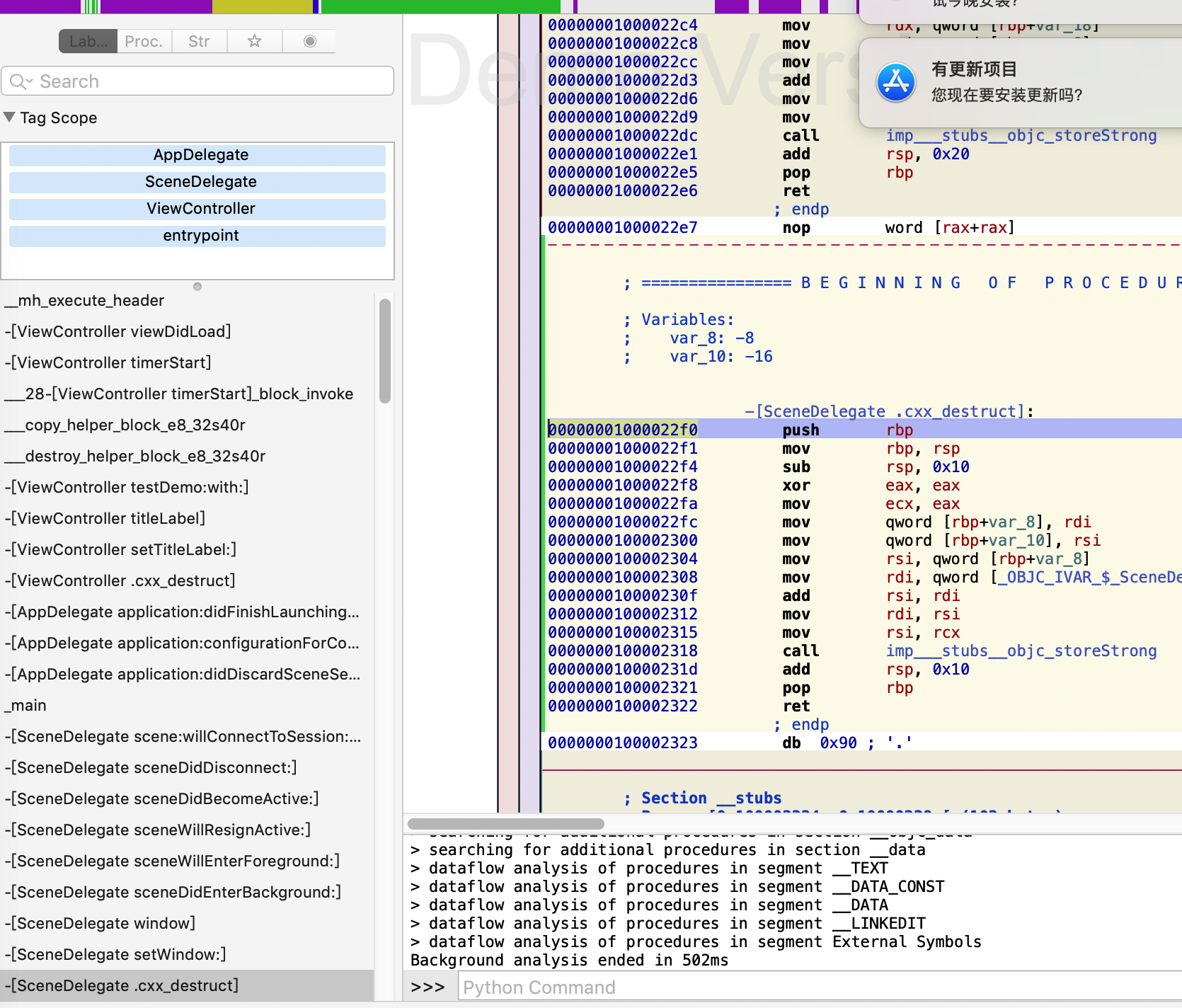 我们在用hopper去看App的函数调用: