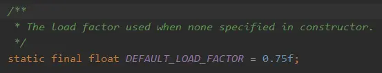 static final float DEFAULT_LOAD_FACTOR = 0.75f;