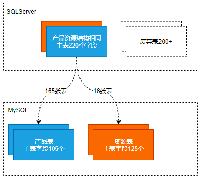数据库800多张表,包括核心表和非核心表,划分不清晰相互影响。非核心业务往往存在大量的数据更新和读取,影响数据库性能,从而影响核心业务。表的结构设计不合理,不同领域的数据结构划分不清晰混在相同的数据表中,产品主表有200多个字段,其中包括很多废弃的字段。SQLServser的复制分发在写库大量数据更新时,分发库存在延迟影响正常业务。