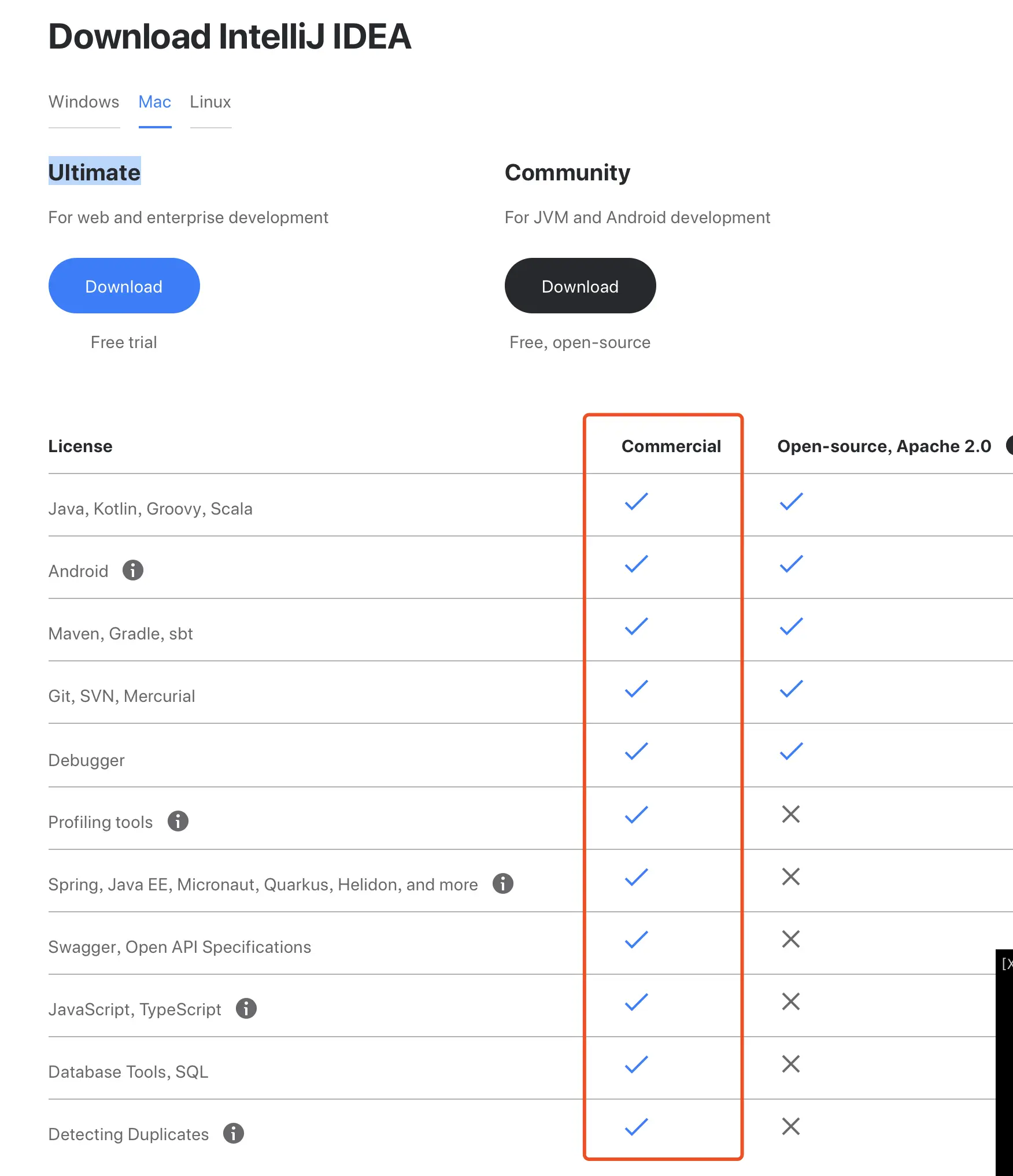 IntelliJ IDEA 这个去官网下载就可,但是要注意一下,我们要下载Ultimate版本的,而且这个版本是收费的(破解版本,或者破解方法,自行百度),但是我们要做服务器开发,必须用这个版本,免费版没有Spring这个功能的支持。