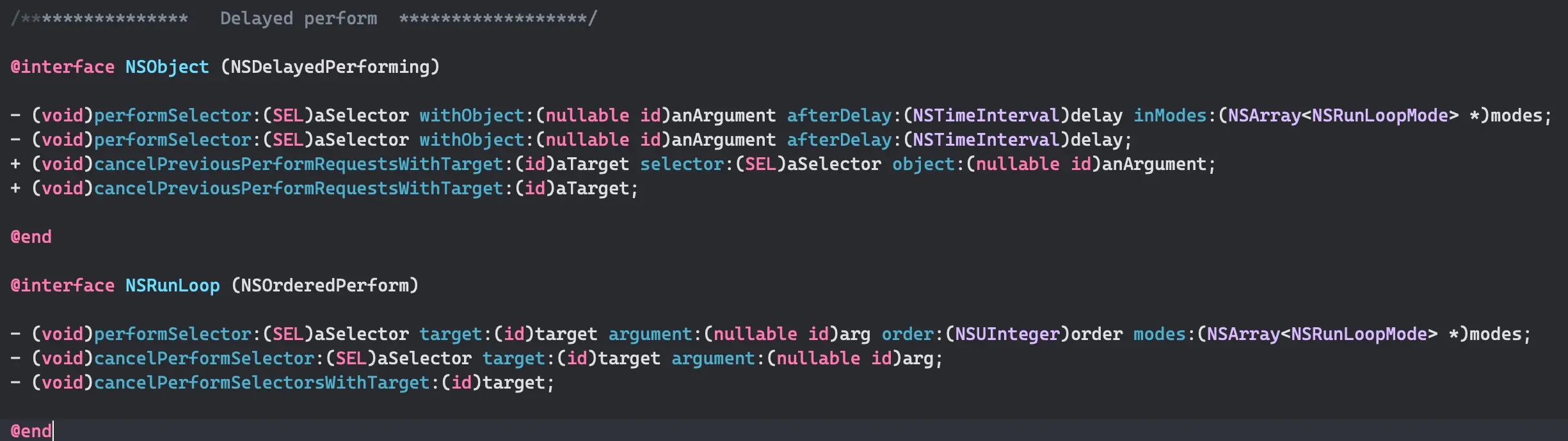NSDelayedPerforming对应于NSObjectNSOrderedPerform对应于NSRunLoop
