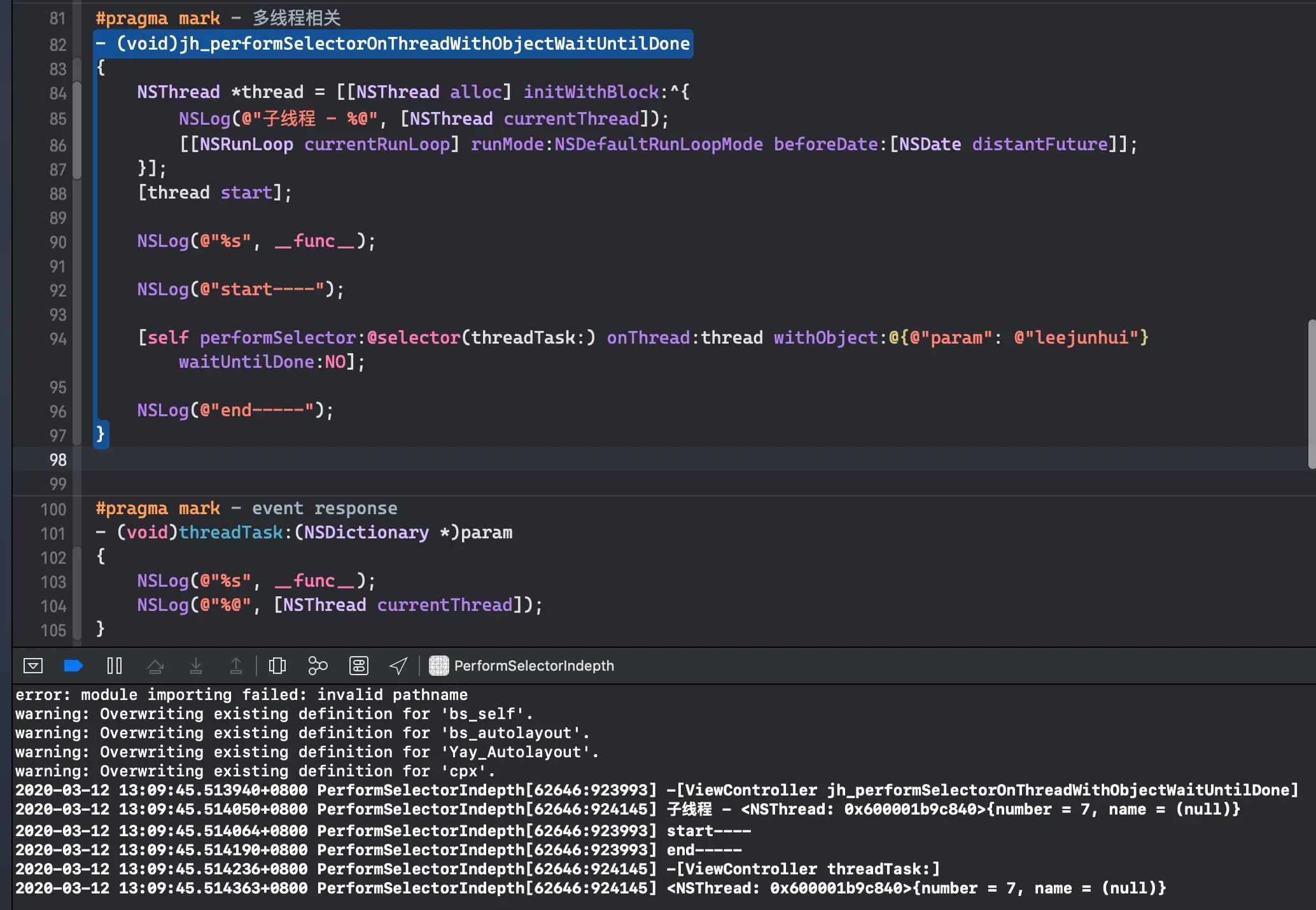 2020-03-12 16:19:36.751675+0800 PerformSelectorIndepth[63660:1061569] -[ViewController threadTask:]