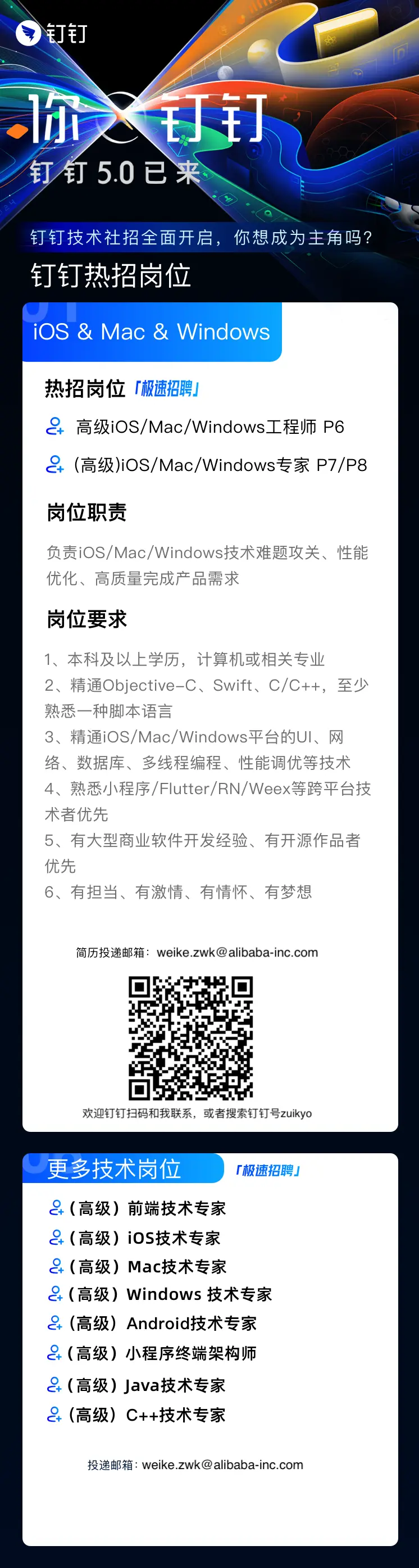 阿里巴巴钉钉技术部门内推,一起构建数字化办公时代! 黑超熊猫zuik 2020-03-12 682 阅读1分钟 今年线上办公大火,钉钉风头大盛,前途无限。欢迎各位技术大佬来投简历,一起构建数字化办公的时代! 技术岗位包括 iOS、Android、Mac、Windows、前端、Java、C++。 内推投递邮箱:weike.zwk@alibaba-inc.com 可以直接钉钉上搜索钉钉号zuikyo联系我。