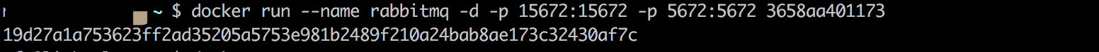 docker run --name rabbitmq -d -p 15672:15672 -p 5672:5672 3658aa401173