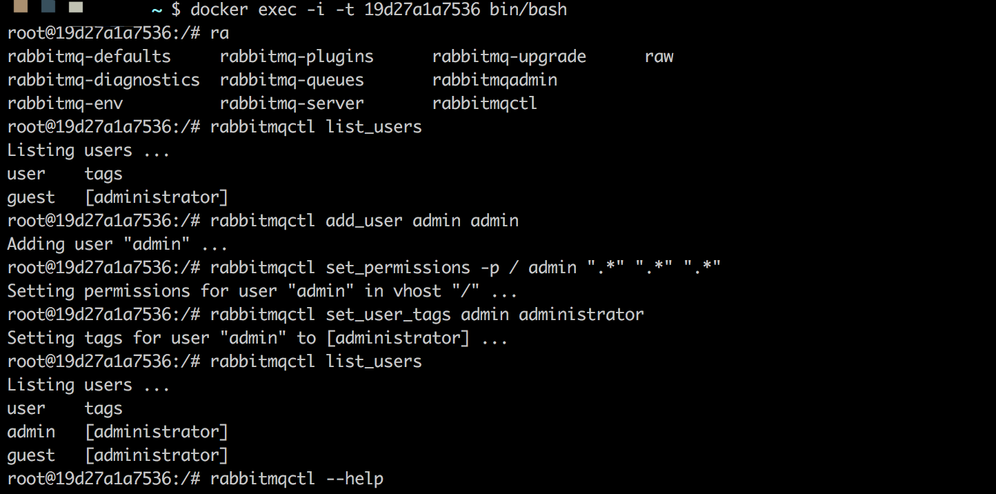 可进入容器内通过rabbitmqctl进行相关配置 进入容器命令