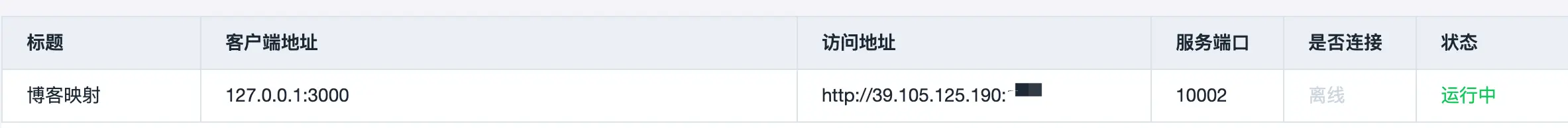 完成了上面这些就可以看到在是否连接一栏显示已连接。打开对应的访问地址,从外网就能直接访问自己的博客了。