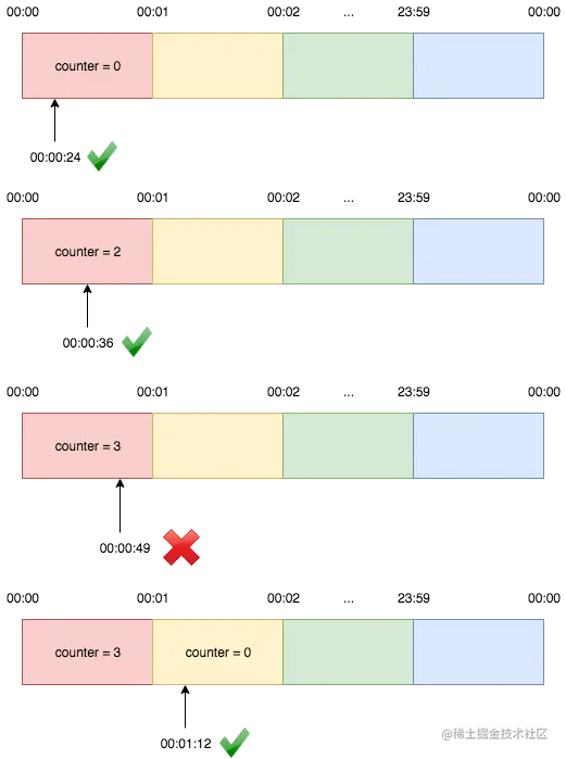 - 将timeline切分为固定的时间窗口,并在每个窗口设置计数器