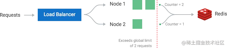 在含有多个节点的集群中,当需要设置一个全局的限流器时,需要一个全局的存储(比如Redis),这样就存在着以下问题
