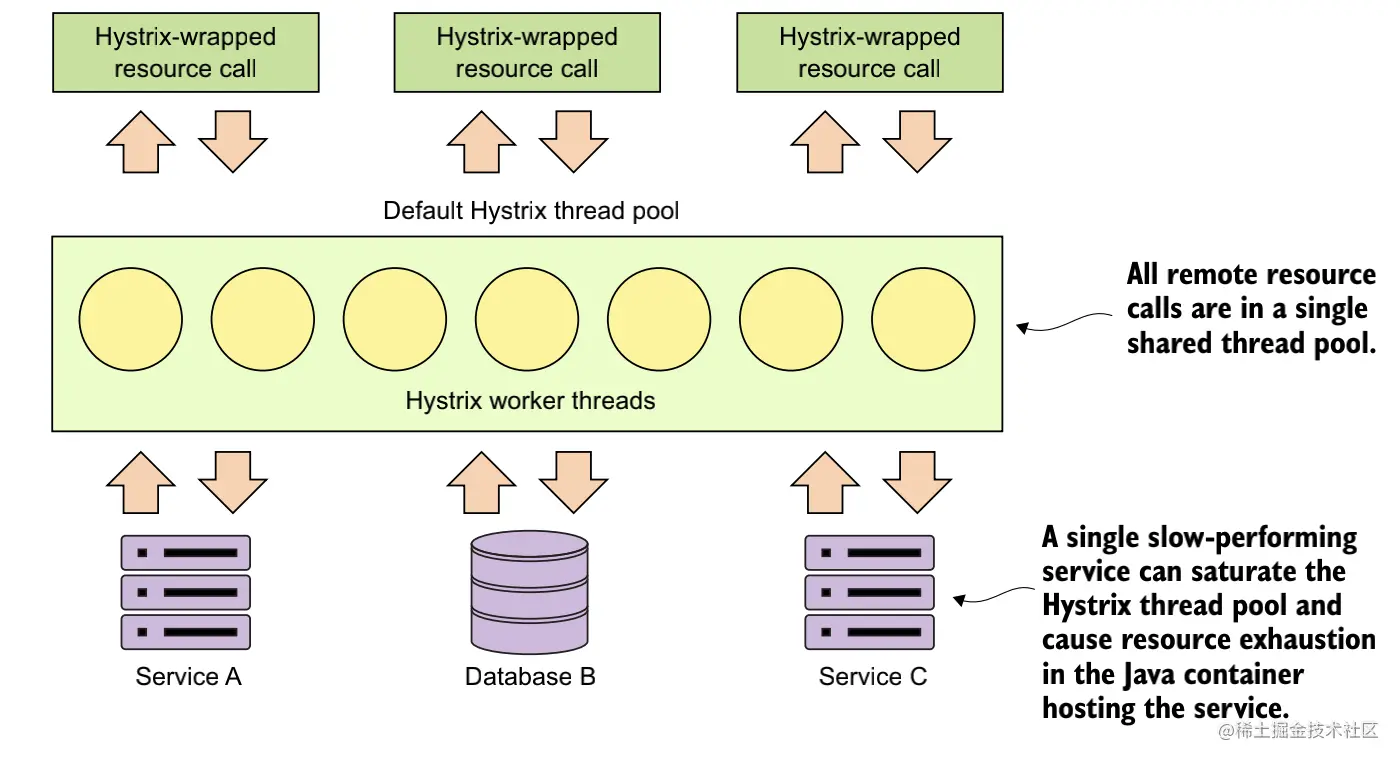一般,在受限资源服务前应用一个具有一定预警安全余量的限流。由于负载滞后,余量是必须的,这样限流保护在资源发生严重竞争之前,就可以起到作用。