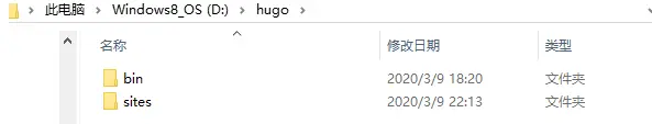 cd hugo\sites\ //进入D:\hugo\sites,以后生成文件都是在这个文件夹下生成