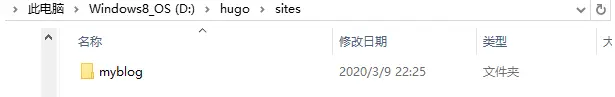 在输入指令后,在D:\hugo\sites 生成一个文件夹myblog
