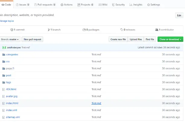 现在需要做的就是将public文件夹的内容提交到远程仓库,这里的操作完全就是git的本地-远程操作,代码在下面,一个一个输进去就行了