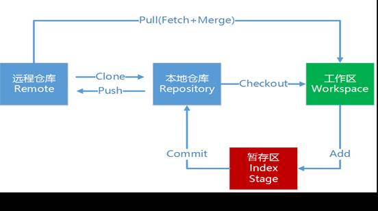 仓库(版本库):相当于一个专门用来存放代码的目录。这个目录里面的所有文件都可以Git管理,每个文件的增删改查都能被Git跟踪到