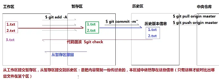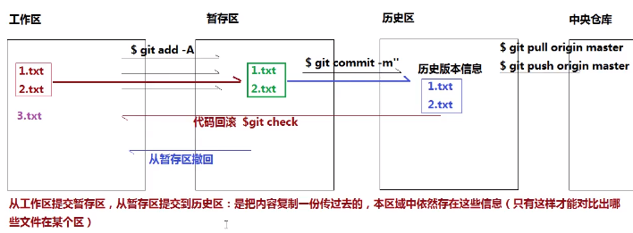 $ git commit -m'描述信息:本次提交内容的一个描述' //将暂存区的所有内容提交到历史区