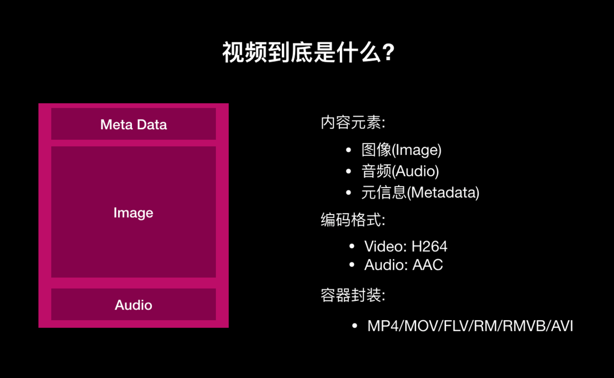 元信息:元信息其实就是描述信息的信息.用于描述信息的结构\语义\用途\用法等.比如视频元信息就包含了视频的具体信息,比如编码格式,分辨率等等.