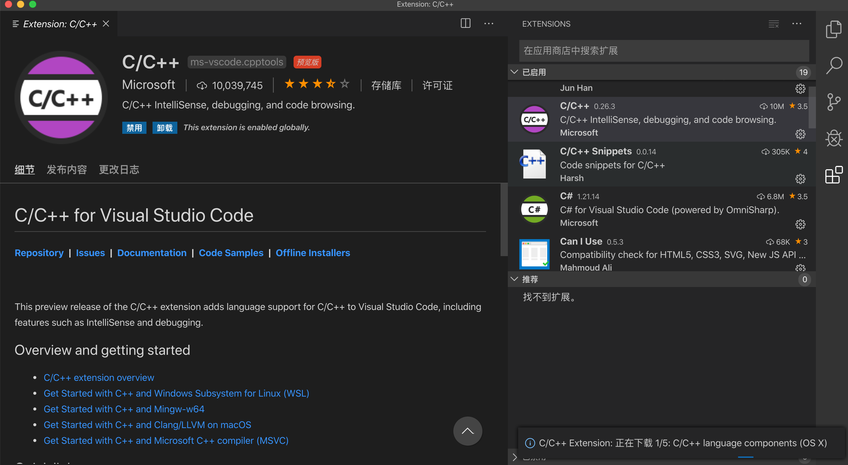VS Code的C/C++扩展不包括C++编译器或调试器,需要在macOS先安装Clang for Xcode,Xcode可以在App Store里安装。在VS Code终端里执行:g++ --help