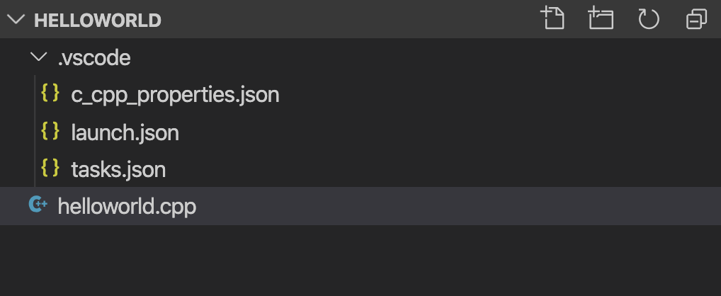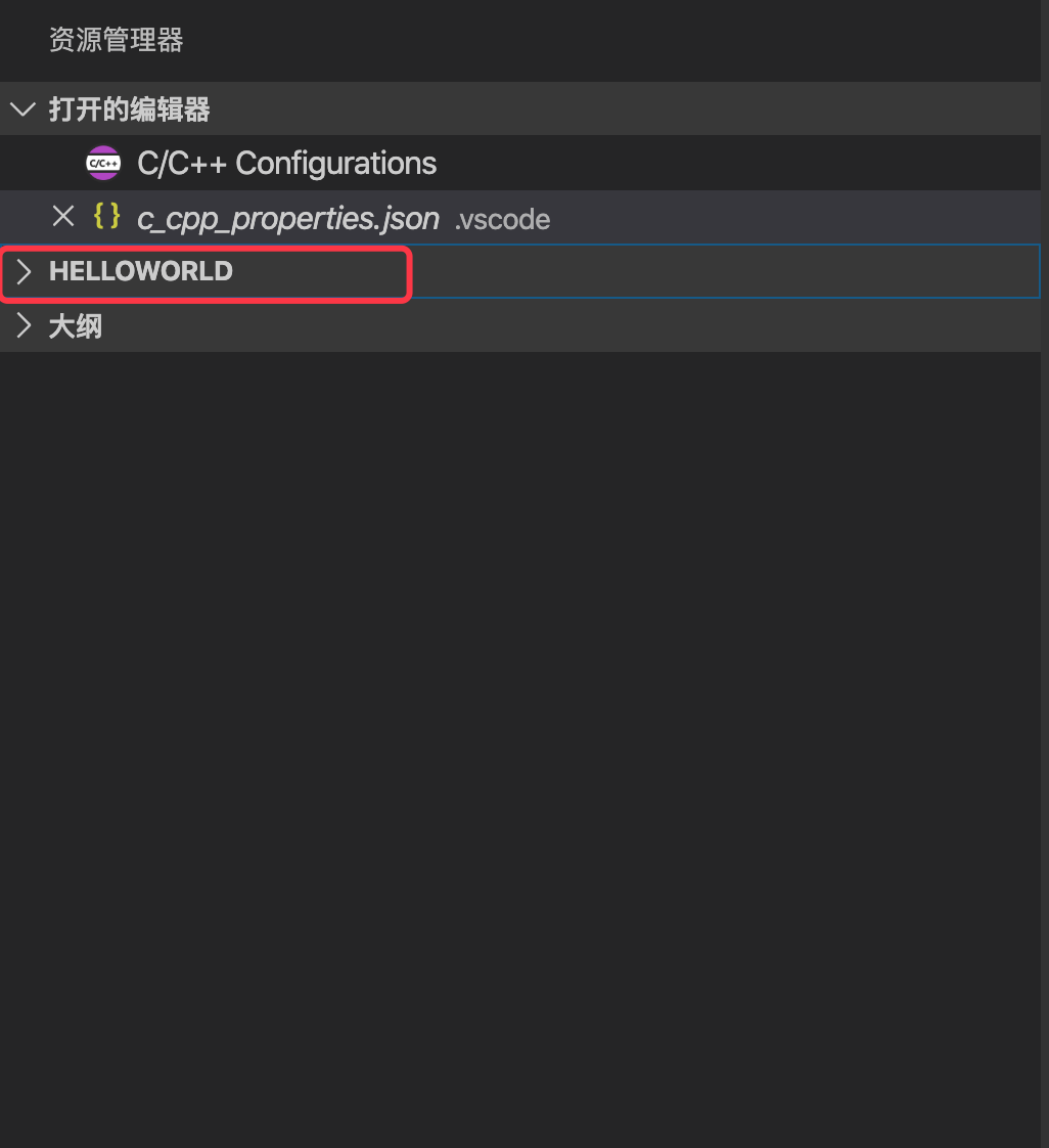 此时工作区目录结构如下,注意helloworld.cpp的位置跟.vscode位置是同一级的: