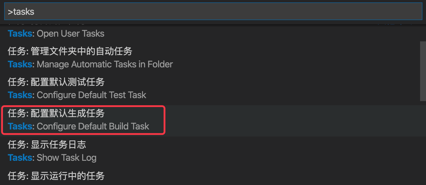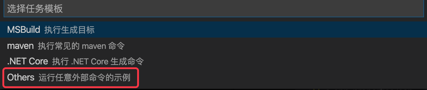 - 在命令面板里选择任务:配置默认生成任务->Others运行任意外部命令的示例,会自动生成task.json文件。