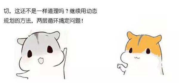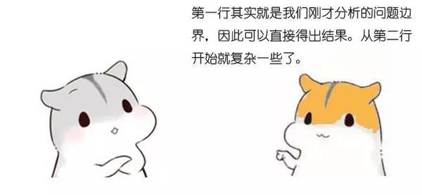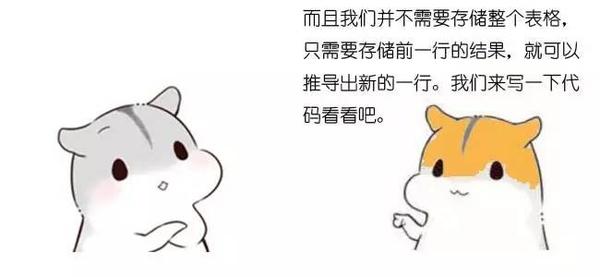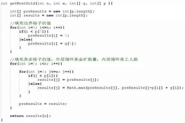 方法利用两层迭代,来逐步推导出最终结果。在外层的每一次迭代,也就是对表格每一行的迭代过程中,都会保留上一行的结果数组 preResults,并循环计算当前行的结果数组results。
