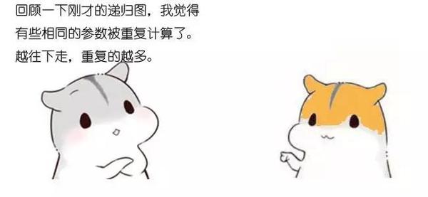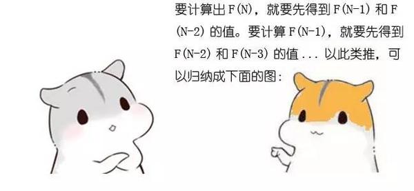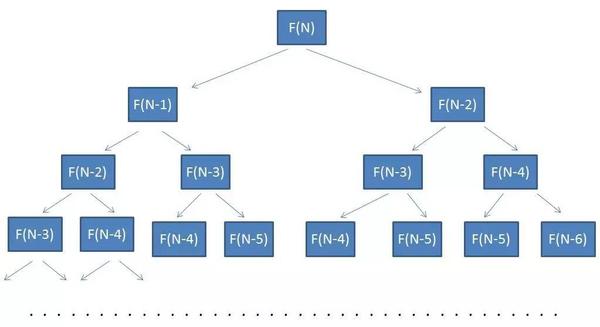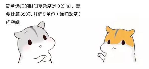 把状态转移方程式翻译成递归程序,递归的结束的条件就是方程式当中的边界。因为每个状态有两个最优子结构,所以递归的执行流程类似于一颗高度为N的二叉树。