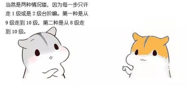 有一座高度是10级台阶的楼梯,从下往上走,每跨一步只能向上1级或者2级台阶。要求用程序来求出一共有多少种走法。
