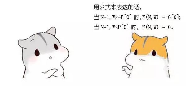 F(n,w) = max(F(n-1,w), F(n-1,w-p[n-1])+g[n-1]) (n>1, w>=p[n-1])