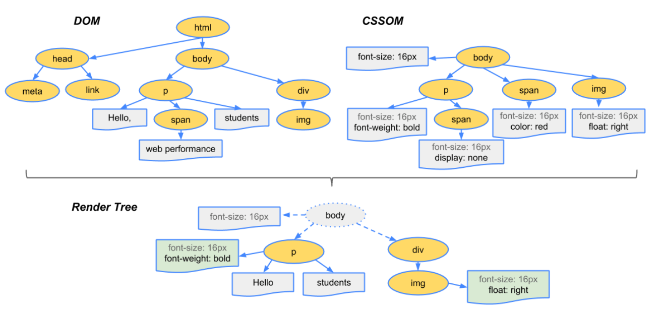 - 两颗树合成渲染树(render tree)