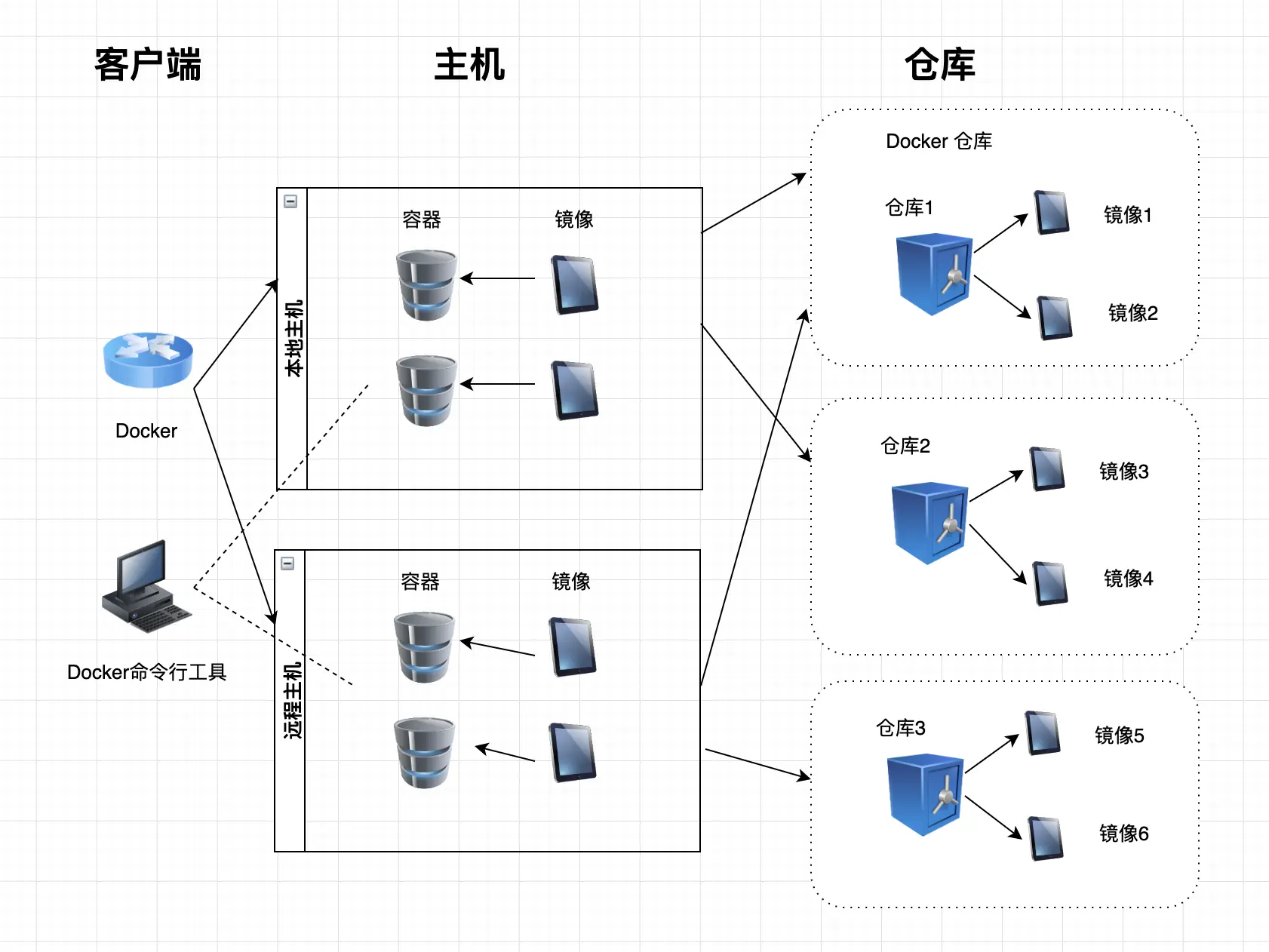 Docker 的三个基本概念如下: