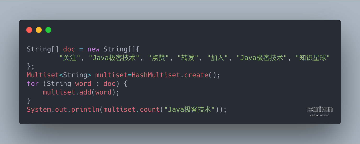 不过上面的功能大家就不需要自己封装,一款来自 Google 开源工具类-Guava,可以轻松的解决上面的统计问题。