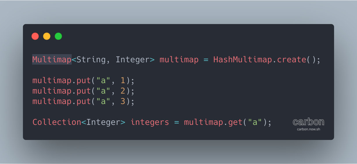 使用 Map + List 这种结构比较笨拙,并且代码实现也比较繁琐。Multimap 正式 Guava 中解决这种问题的新出的一个雷。